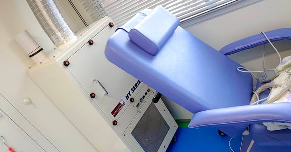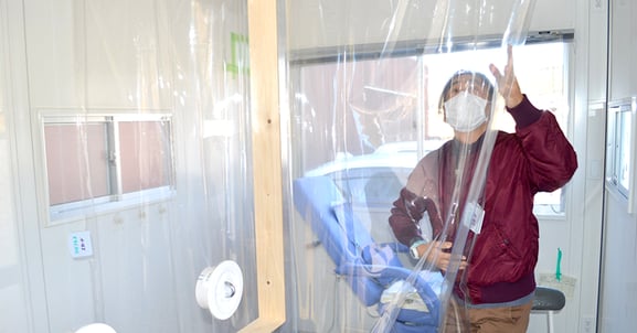 かぜ専用診察室の中は、アクリル板やビニールシートで区切られており、