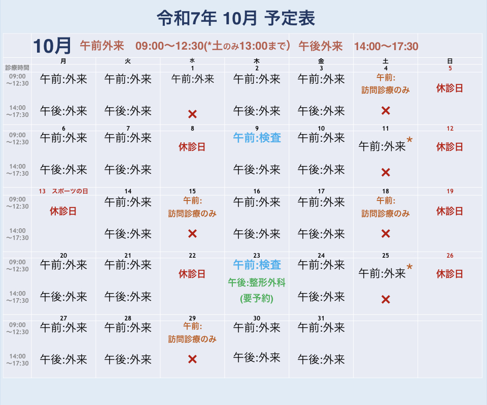 診療受付時間/平日: 午後12:00、午後17:00 土曜 :午後12:00